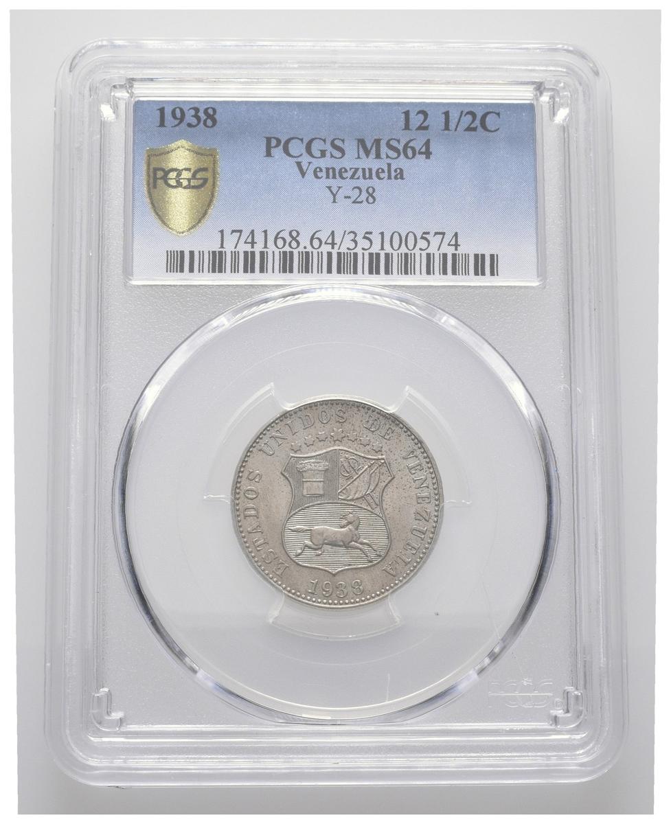 ESTADOS UNIDOS DE VENEZUELA. 12 1/2 Céntimos. (CuNi. 5,00g/23mm). 1938. (Km#Y28). Encapsulado PCGS MS-64.