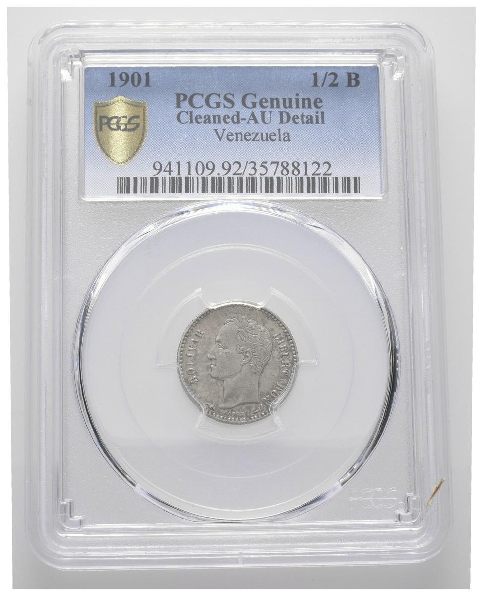 ESTADOS UNIDOS DE VENEZUELA. 1/2 Bolívar. 1901 (Ar. 2,5g/18mm). París. (Km#Y21). Encapsulado PCGS AU Details. Limpiada.