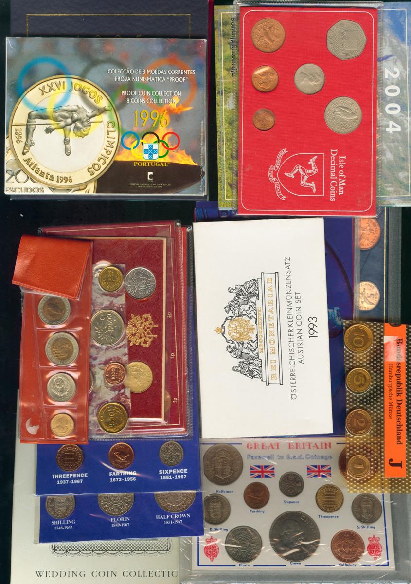MONEDAS EXTRANJERAS. Lote compuesto por gran variedad de sets conmemorativos del final de siglo XX de diferentes países. A EXAMINAR.