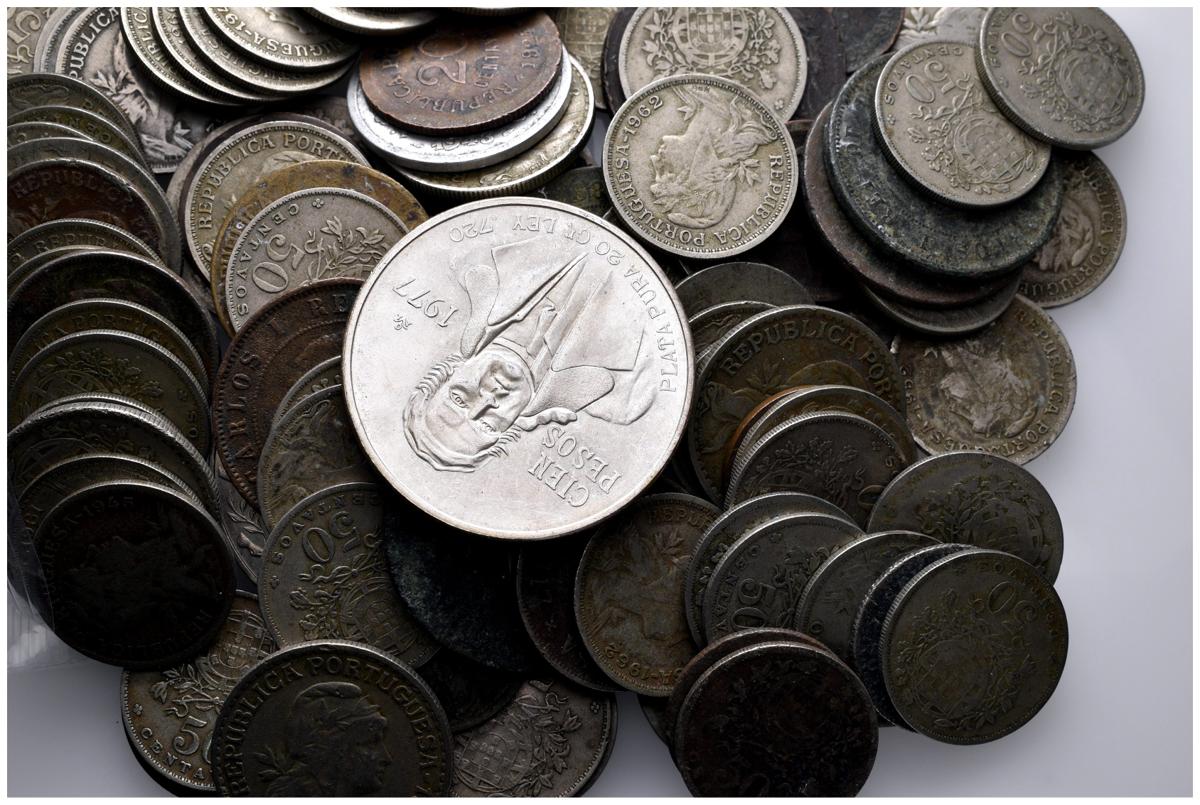 LOTE de 168 monedas mundiales. Mayoría de piezas de Portugal. Diferentes módulos y materiales, destacando 100 Pesos de 1977 de México. Diferentes estados de conservación. A examinar.