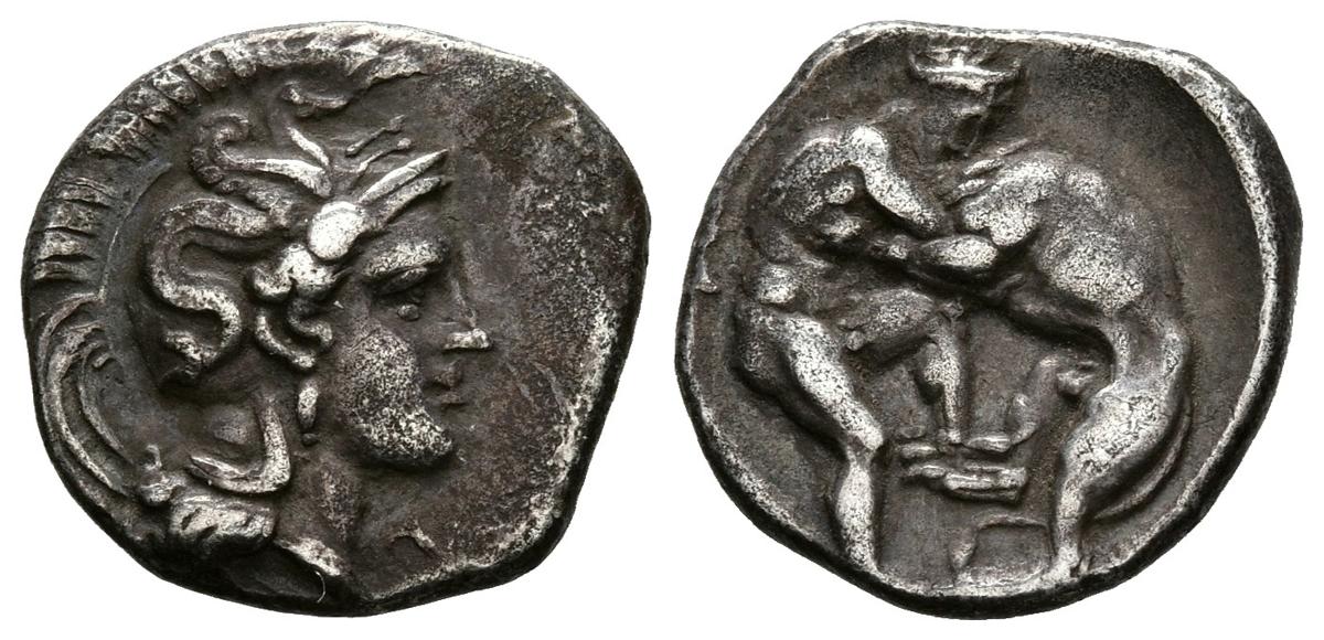 CALABRIA, Tarento. Dióbolo (Ar. 1,21g/12mm). 334-302 a.C. (Cayón 256). MBC+.