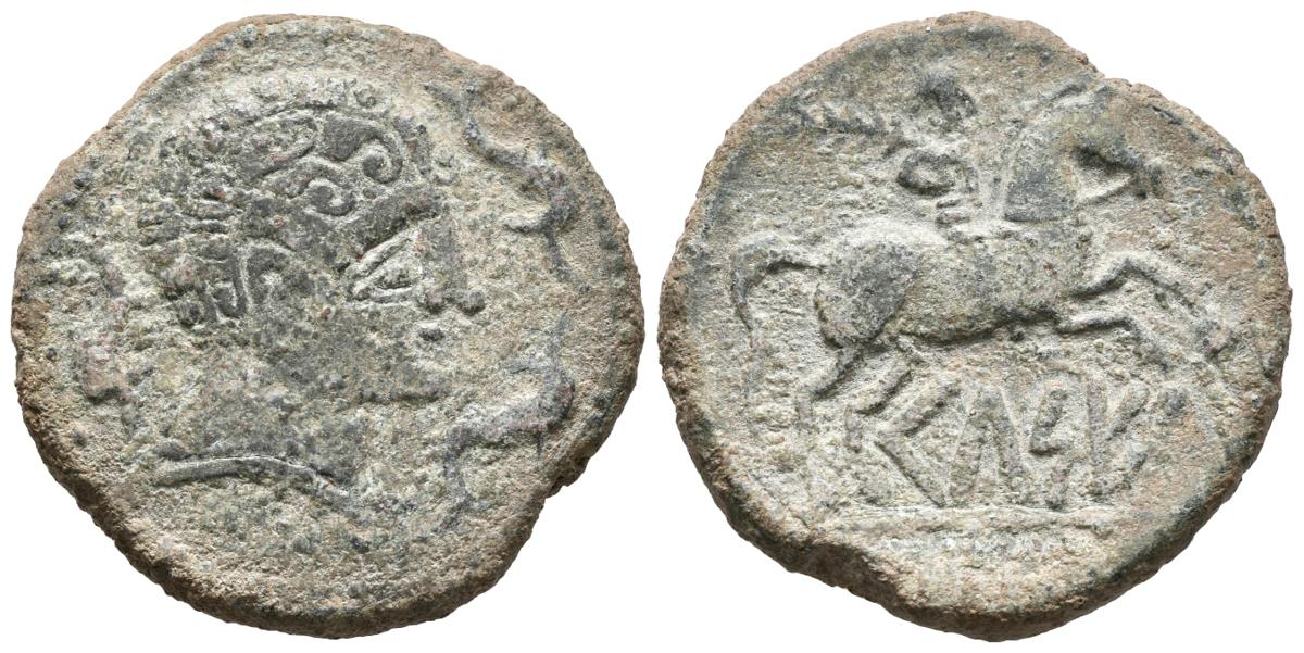 CELSE (Velilla del Ebro, Zaragoza). As. (Ae. 14,74g/29mm). 120-50 a.C. (FAB-771 var). Variante: Diferente arte en el peinado. MBC+.