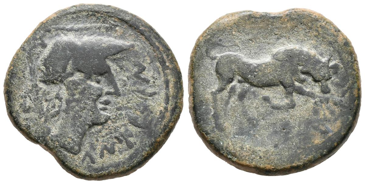 UNTICESCEN (San Martín de Ampurias, Gerona). Semis. (Ae. 11,14g/25mm). 130-90 a.C. (FAB-1226). MBC/MBC-.