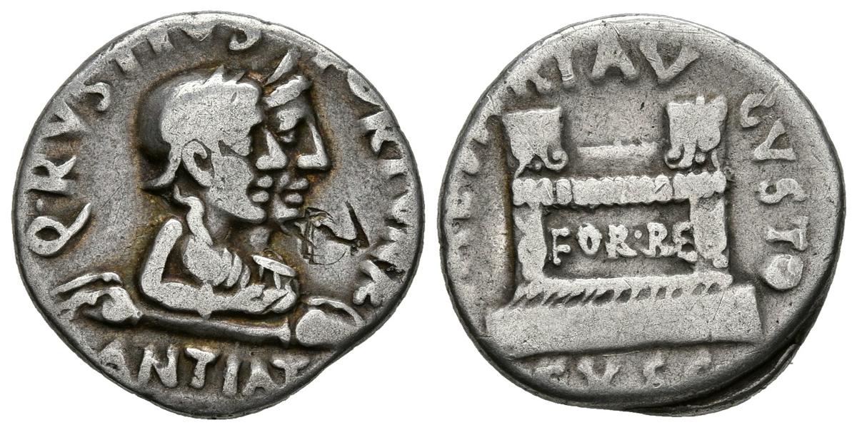 GENS RUSTIA. Denario. (Ar. 3,62g/18mm). 19 a.C. Roma. (RIC 322; Sear 1605). MBC-. Contramarca en anverso.