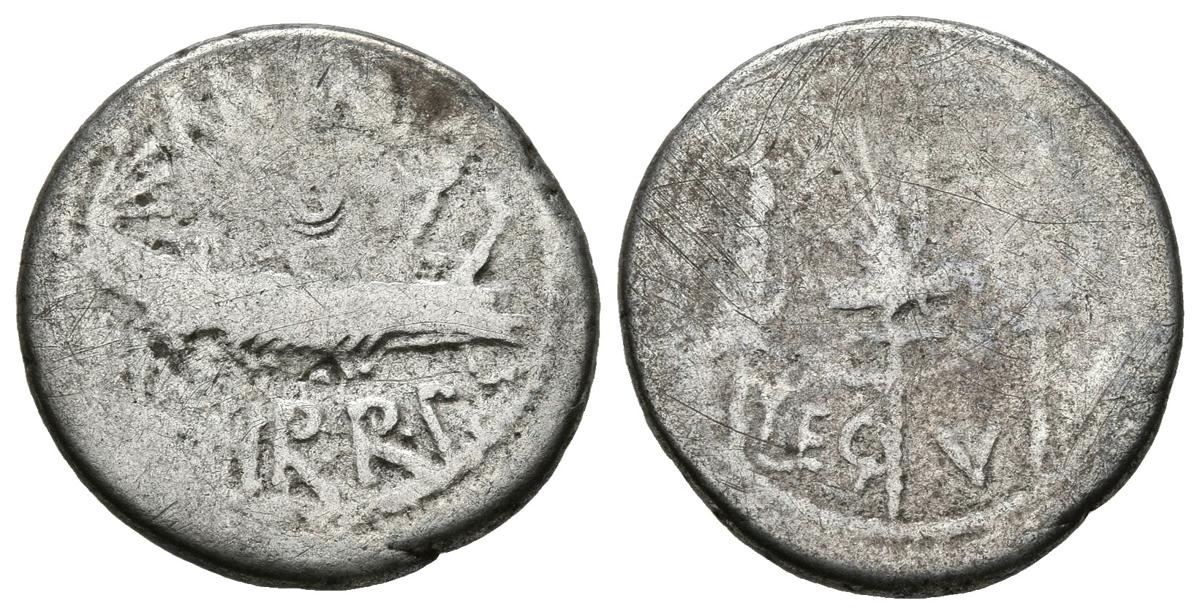 MARCO ANTONIO. Denario. (Ar. 3,13g/17mm). 32-31 d.C. Ceca móvil. (Crawford 544/18; Sydenham 1221). BC+.
