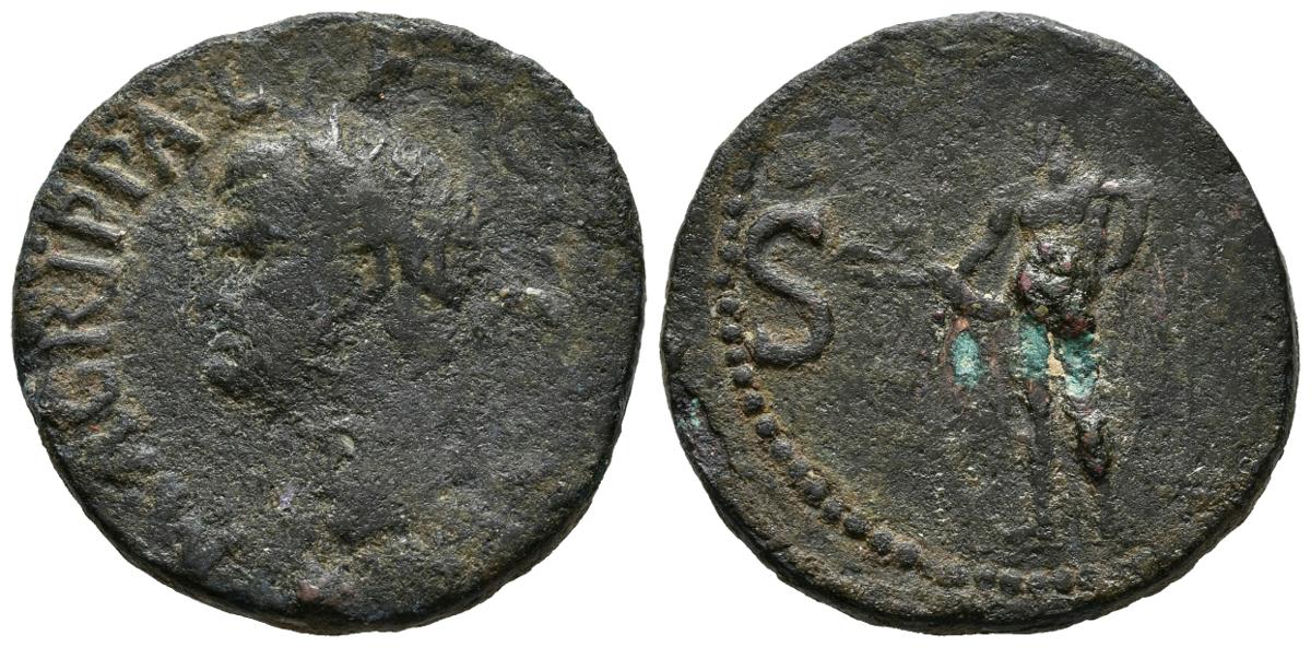 AGRIPPA. As. (Ae. 10,06g/26mm). 12 a.C. (acuñada a nombre de Calígula) Roma. (RIC 58; Cohen 3). MBC-.