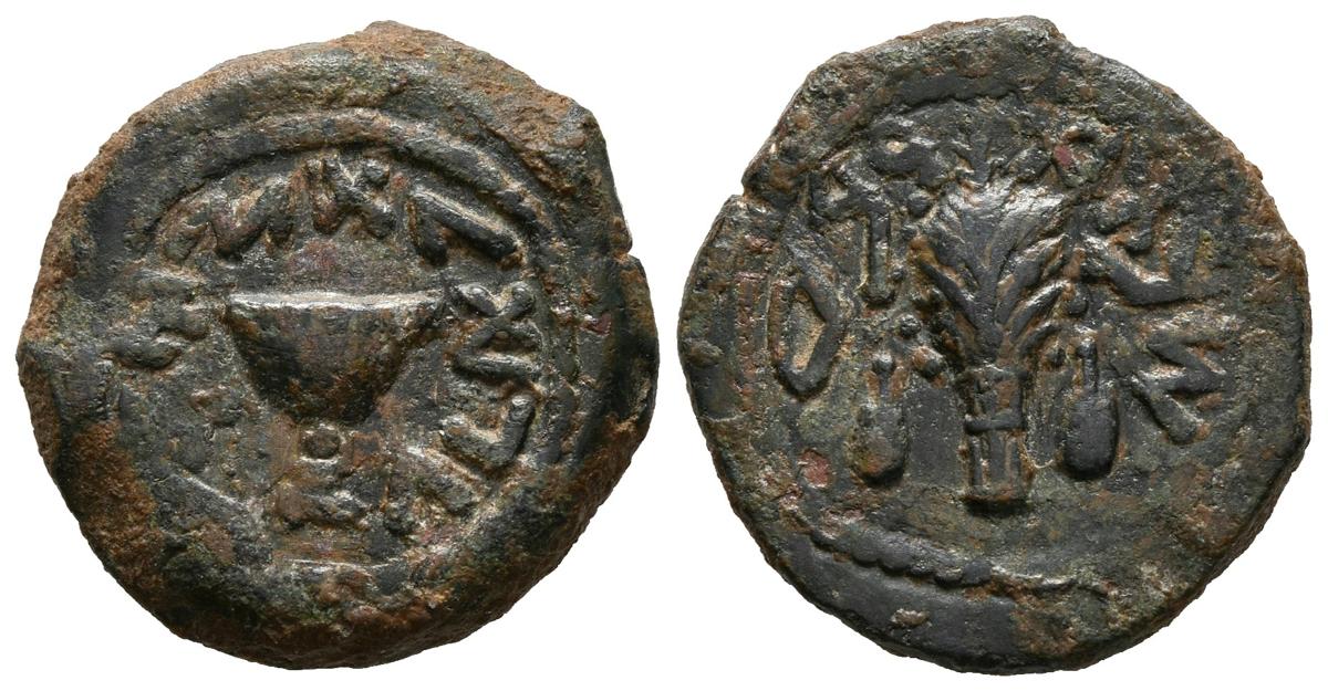 JUDAEA, Primera guerra judía. 1/8 Shekel. (Ae. 5,68g/18mm). 69-70 d.C. (año 4). Jerusalén. (Hendin 1369; Meshorer 214). MBC.