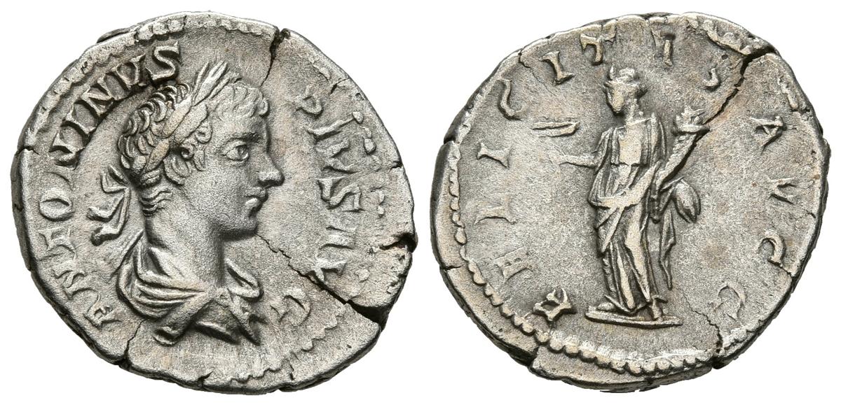CARACALLA. Denario. (Ar. 3,16g/19mm). 201-206 d.C. Roma. (RIC 127; Cohen 64). MBC+. Grietas.