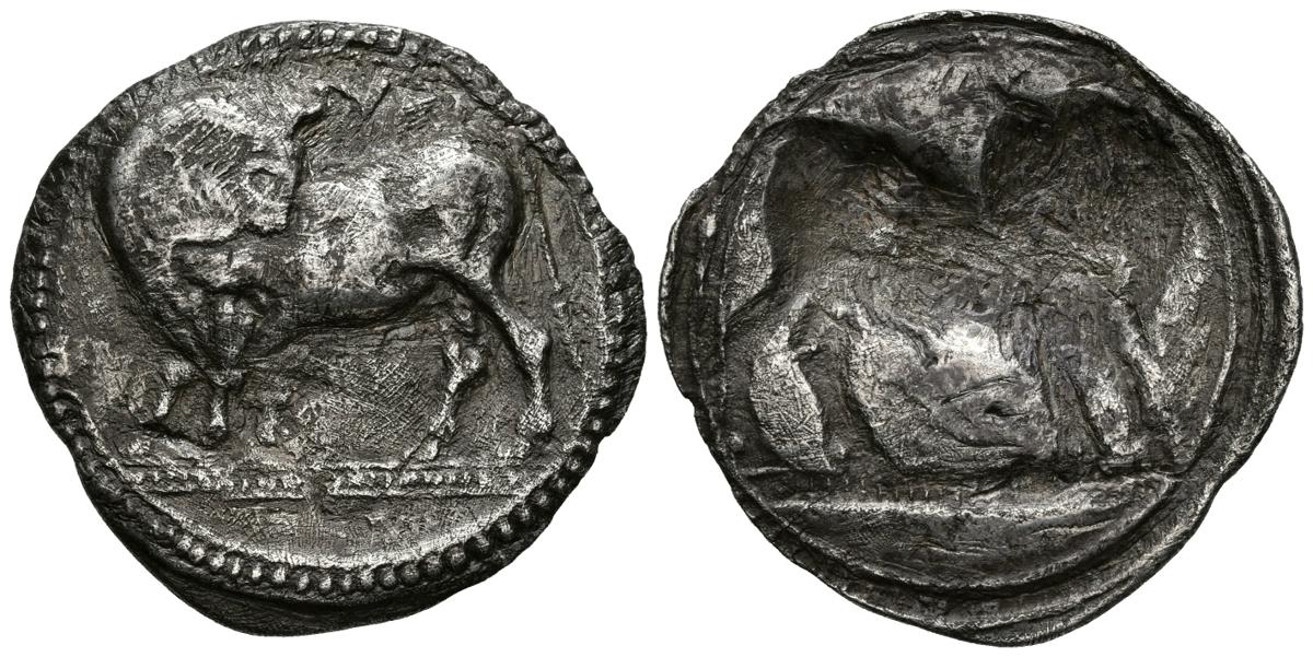 LUCANIA, Sybaris. Estátera. (Ar. 6,68g/30mm). 530-510 a.C. (SNG Copenhagen 1390; HN Italy 1729). MBC.