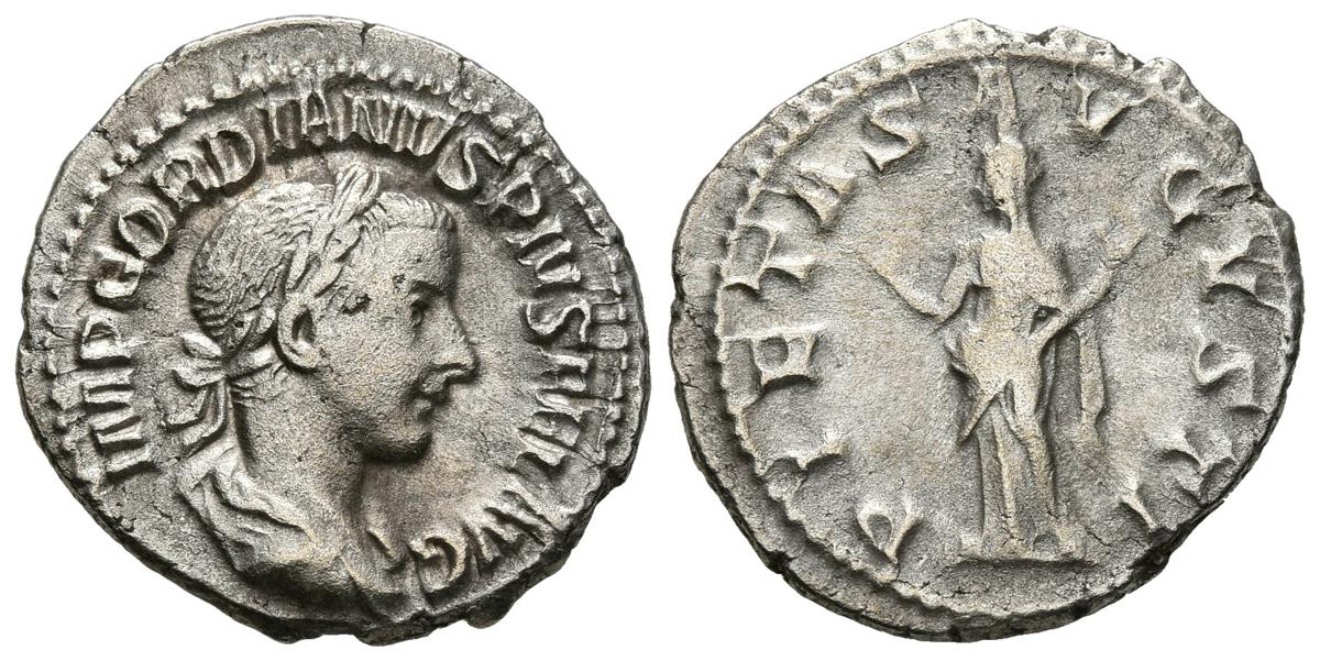 GORDIANO III. Denario. (Ar. 2,96g/20mm). 240 d.C. Roma. (RIC 129; Cohen 186). MBC/MBC-.