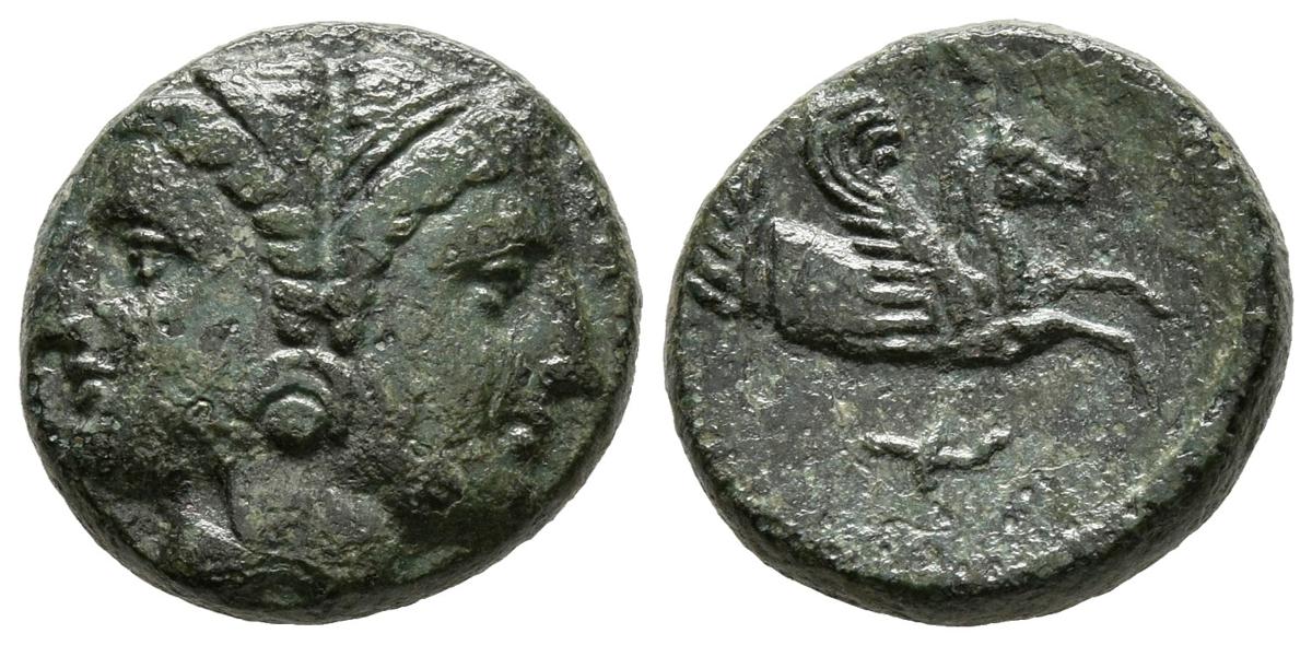 MYSIA, Lampsakos. Ae15. (Ae. 4,44g/15mm). Siglo IV-Siglo III a.C. (SNG France 1202 var). Variante de símbolo debajo de pegaso en reverso. MBC/MBC+.