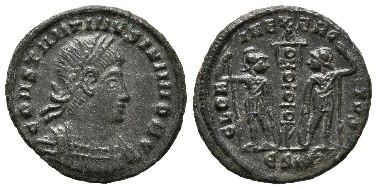 CONSTANCIO II. Follis. (Ae. 1,47g16mm). 335-337 d.C. Siscia. (RIC 256). EBC-.