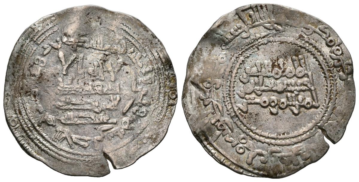 CALIFATO DE CORDOBA. Al-Andalus. Abd Al-Rahman III. Dirham. (Ar. 3,06g/24.3mm). 335 H. Citando Abd Allah en la IA. (Vives 411). BC+/MBC.