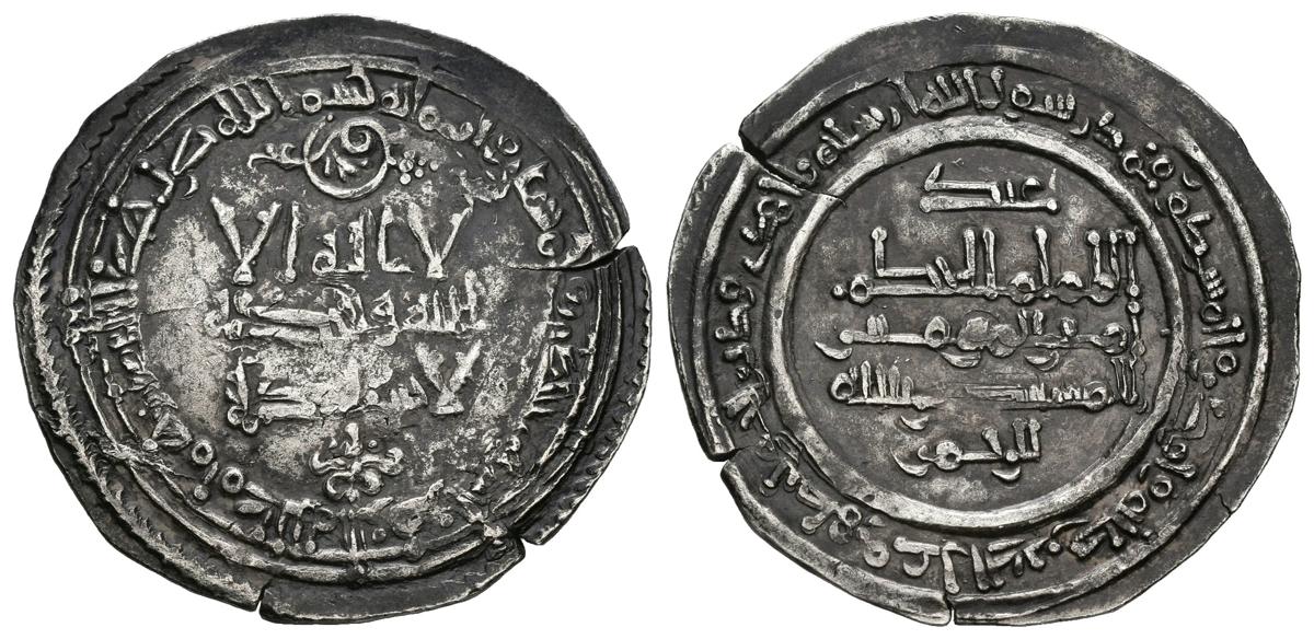 CALIFATO DE CORDOBA. Al-Hakam II. Dirham. (Ar. 2.86g/27.1mm). 351H. Madinat Al-Zahra. Citando a ´Abd/Al-Rahman en la IIA. (mòdulo L). (Vives 449; Frochoso 351.87). MBC-/MBC. Variante de adorno muy escasa