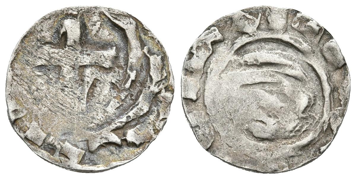 BISBE TEODORIC. Obolo de imitación carolingia (Ar. 0.87g). 904-937. d.C. Comtat de Barcelona. (Cru.V.S. falta; Cru.C.G. 1811). BC+. Rara