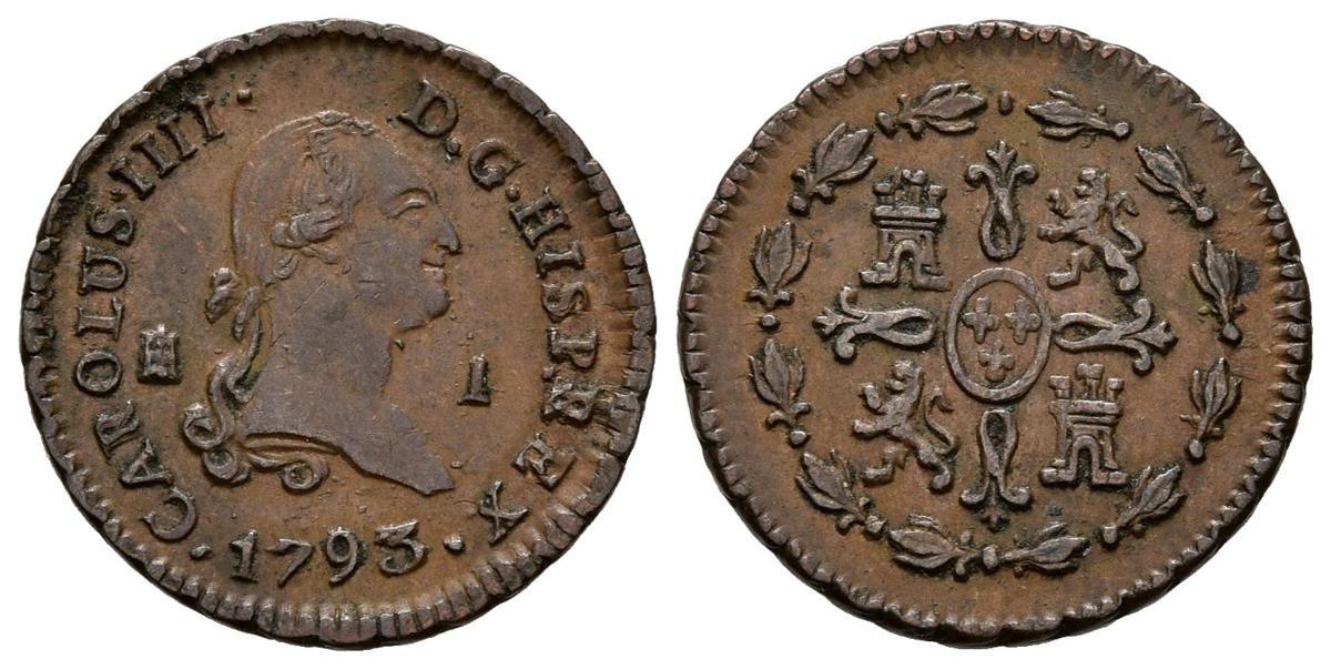 CARLOS IV (1788-1808). 1 Maravedí. (Ae. 1,23g/15mm). 1793 Segovia. (Cal-21). MBC+.