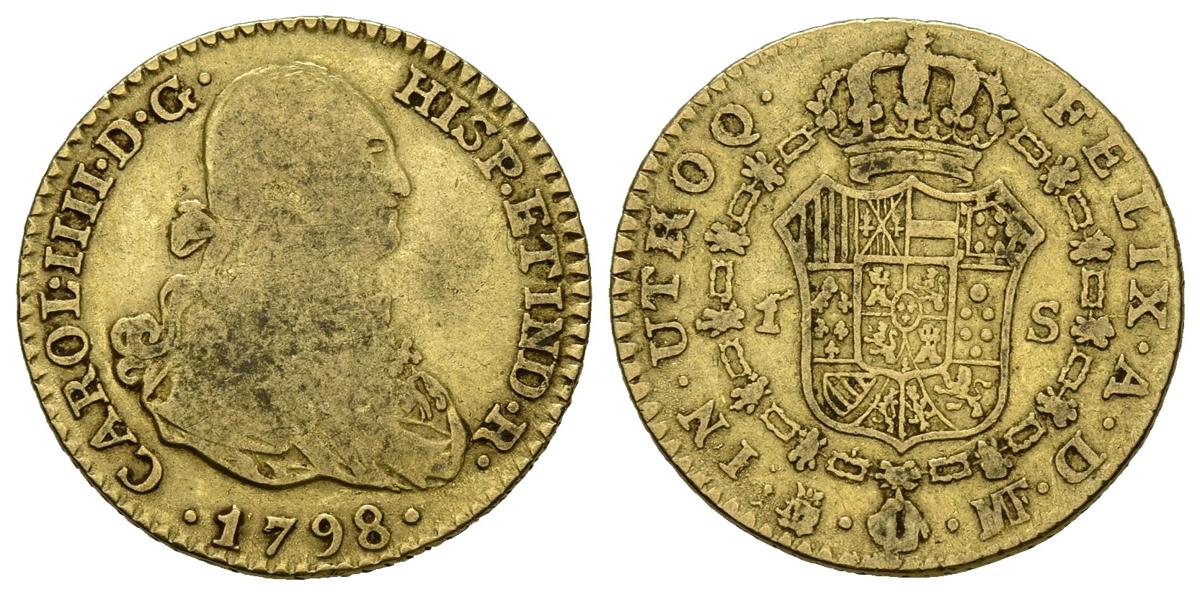 CARLOS IV (1788-1808). 1 Escudo. (Au. 3,31g/18mm). 1798. Madrid MF. (Cal-1116). MBC-.