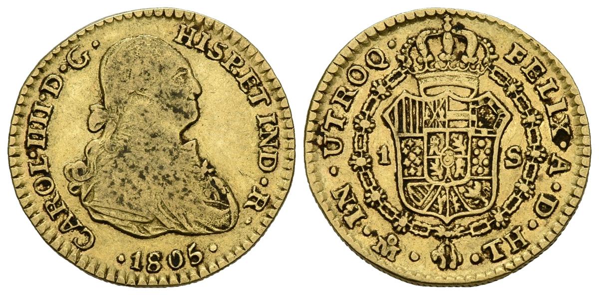 CARLOS IV (1788-1808). 1 Escudo. (Au. 3,35g/18mm). 1805. México TH. (Cal-1139). MBC.