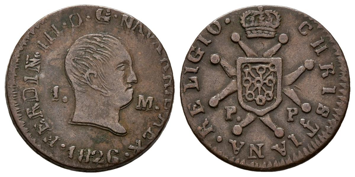 FERNANDO VII (1808-1833). 1 Maravedí. (Ae. 2,01g/17mm). 1826. Pamplona. (Cal-37). EBC-.
