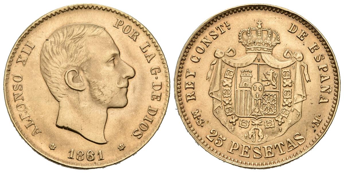 ALFONSO XII (1875-1885). 25 Pesestas. 1861. *18-81. (Au. 7,94g/24mm). Reproducción de joyería. Fecha imposible. EBC+