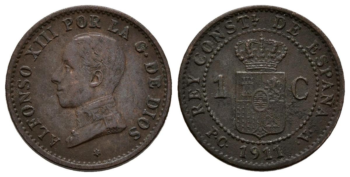 ALFONSO XIII (1885-1931). 1 Céntimo. (Ae. 1,08g/15mm). 1911 *1. Madrid PCV. (Cal-3). MBC+.