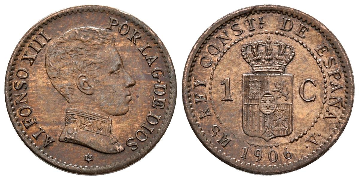 ALFONSO XIII. 1 Céntimo. (Ae. 0,94g/15mm). 1906 *6. Madrid SMV. (Cal-76). EBC/EBC+. Rara.