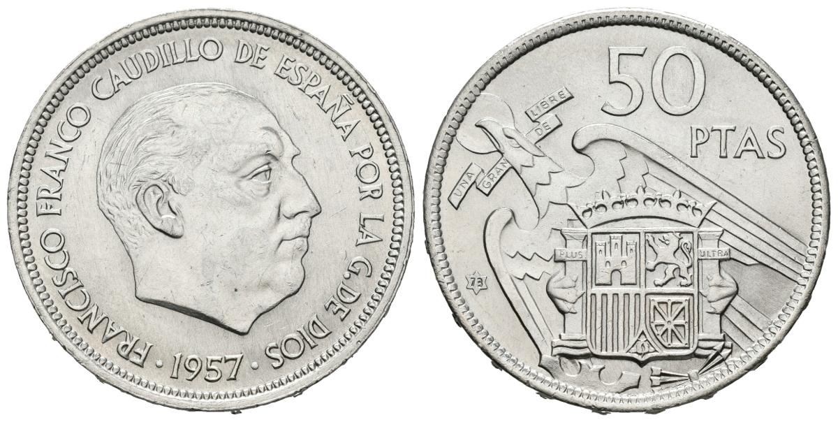 ESTADO ESPAÑOL. 50 Pesetas. 1957 *73. Cal-26. 12,45g. SC-.