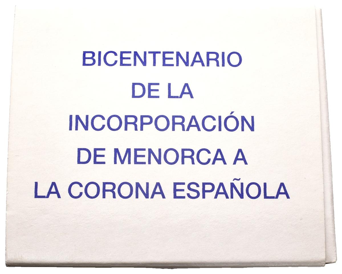 JUAN CARLOS I. 10 Euros. (Ar. 27,00g/40mm). 2002. "BICENTENARIO DE LA INCORPORACION DE MENORCA A LA CORONA ESPAÑOLA". PROOF. Presentada en estuche oficial con certificado.
