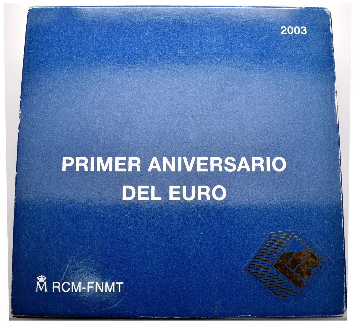 JUAN CARLOS I. 50 Euros. (Ar. 168,75g/73mm). Madrid. 2003. "Primer Aniversario del Euro". PROOF. Presentado en encapsulado oficial con caja y certificado de la F.N.M.T.