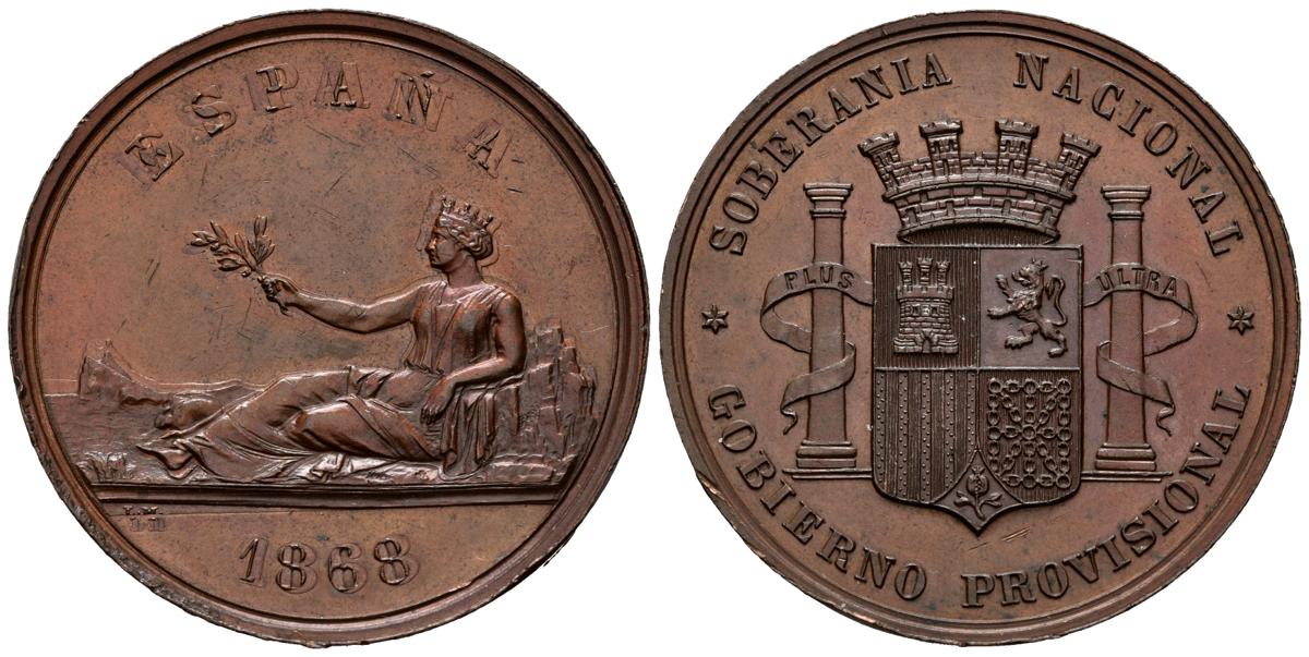 GOBIERNO PROVISIONAL (1868-1871). Conmemoración de la Soberanía Nacional (sirvió como modelo para el duro del 69). (Ae. 24,79g/36mm). 1868. Grabador Luis Marchionni. (V.Q.14374). EBC. Ligeramente repintada.
