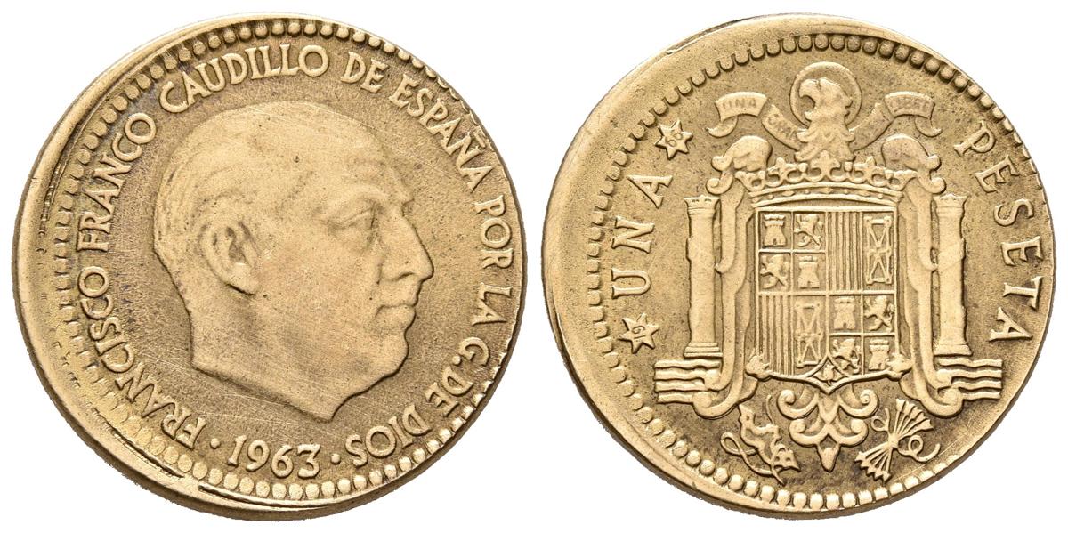 ESTADO ESPAÑOL. 1 Peseta (Cu. 3,43g/21mm). 1963 (*19-65). Madrid. (Cal-2019-65). MBC. Acuñación desplazada 2mm.