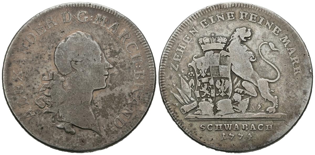 ALEMANIA. 1 Thaler. (Ar. 27,38g/39mm). 1774. Ansbach. (Dav. 2007). MBC-.