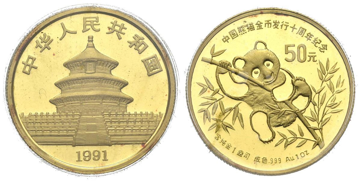 CHINA. 50 Yuans. (Au. 31,07g/27mm). 1991. (Km#357). PROOF. Presentado en encapsulado y blíster oficial.