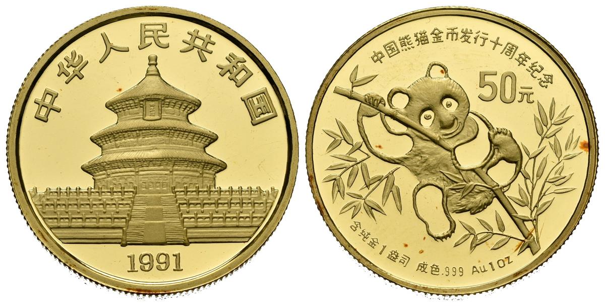 CHINA. 50 Yuans. (Au. 31,07g/27mm). 1991. (Km#357). PROOF. Presentado en encapsulado y blíster oficial.