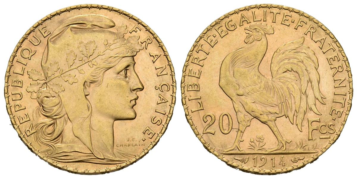 FRANCIA. 20 Francs. (Au. 6,46g/21mm). 1914. (Km#857). EBC+.