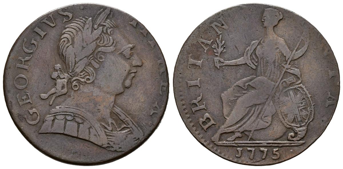 GRAN BRETAÑA. 1/2 Penny. (Cu. 7,79g/27mm). 1775. (Km#601). MBC-.