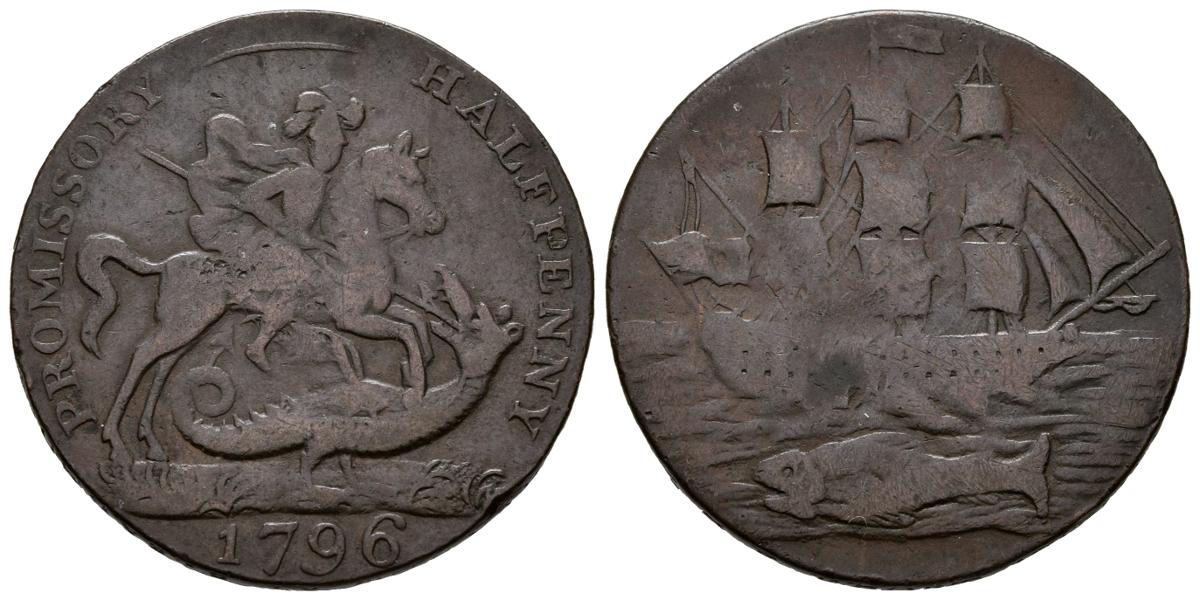GRAN BRETAÑA. 1/2 Penny-Token. (Ae. 10,34g/29mm). 1796. Hampshire, Portsea. (DH#79; Atkins#52). MBC-.