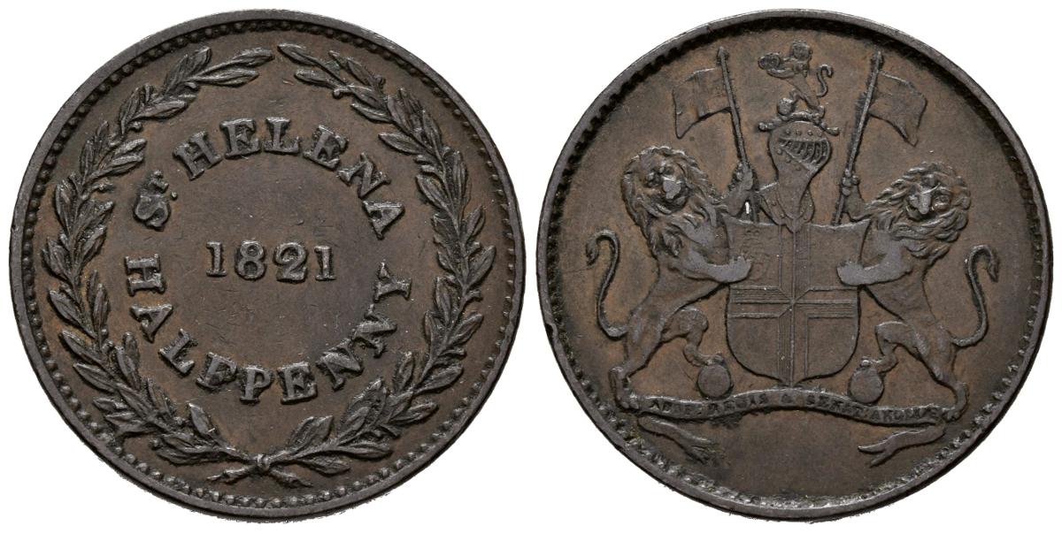 GRAN BRETAÑA. 1/2 Penny. (Cu. 9,42g/28mm). 1821 (año de la muerte de Napoleón Bonaparte en esta misma isla). Imperio británico (Compañía del Este de la India). (Km#4a). MBC+.