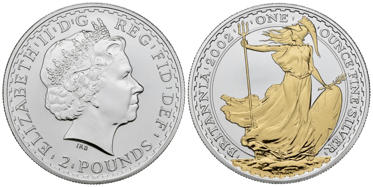 GRAN BRETAÑA. 2 Libras. (Ar. 32,65g/40mm). 2002. Detalles de oro. PROOF.