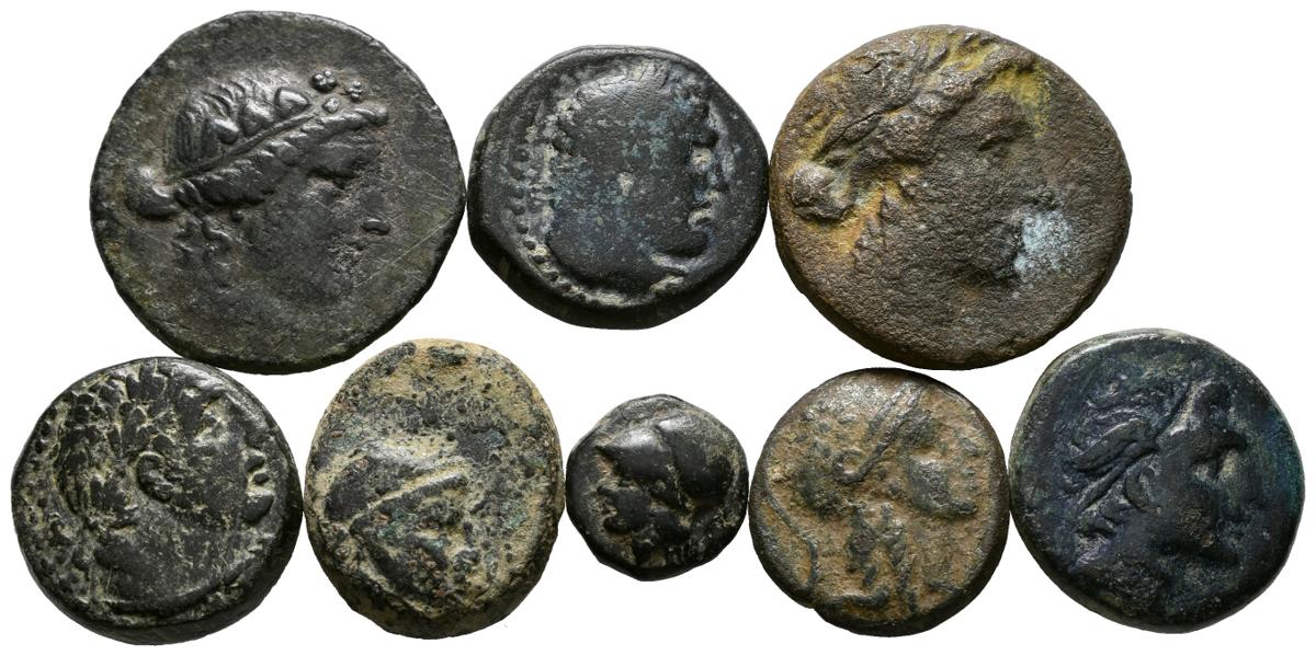 GRECIA ANTIGUA. Lote compuesto por 8 monedas de bronce diversas. Diferentes calidades. A EXAMINAR.