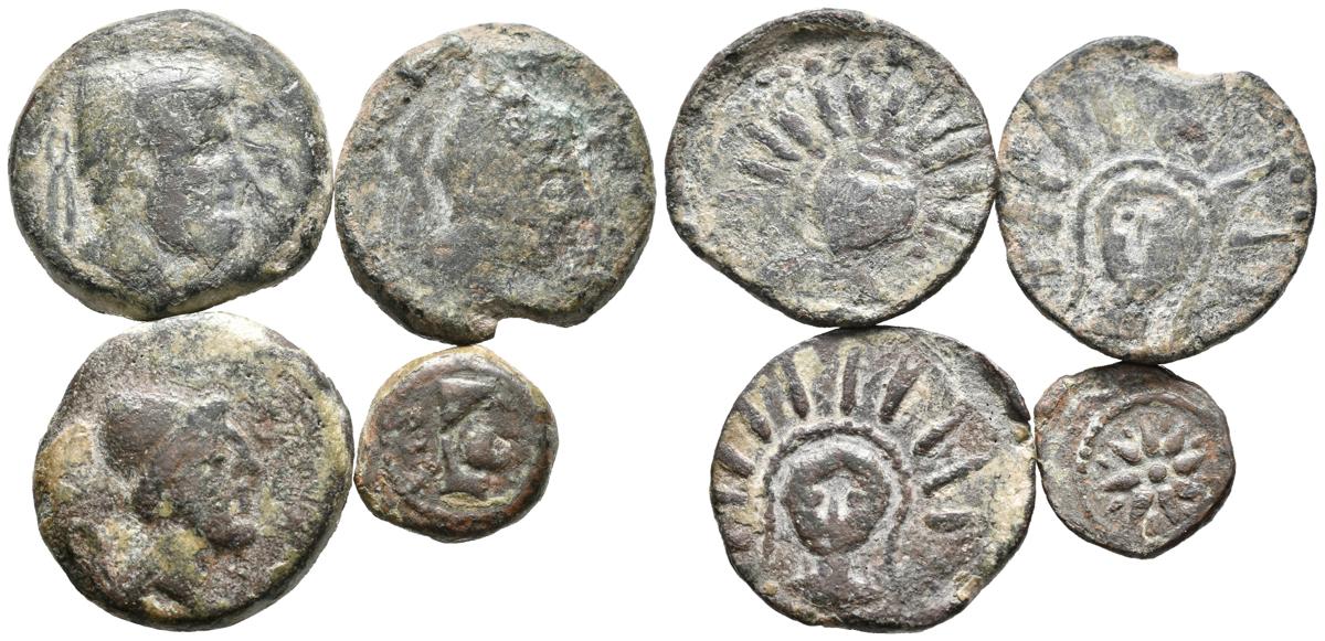 MALACA. Lote compuesto por 4 monedas, conteniendo 3 Ases y 1 Sextante. Ae. A EXAMINAR.