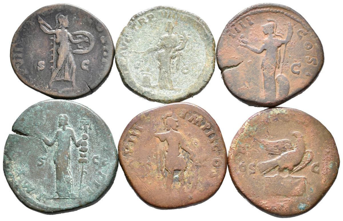 IMPERIO ROMANO. Lote compuesto por 6 Sestercios de Marco Aurelio y Cómodo, todos con reversos diferentes. Ae. A EXAMINAR.