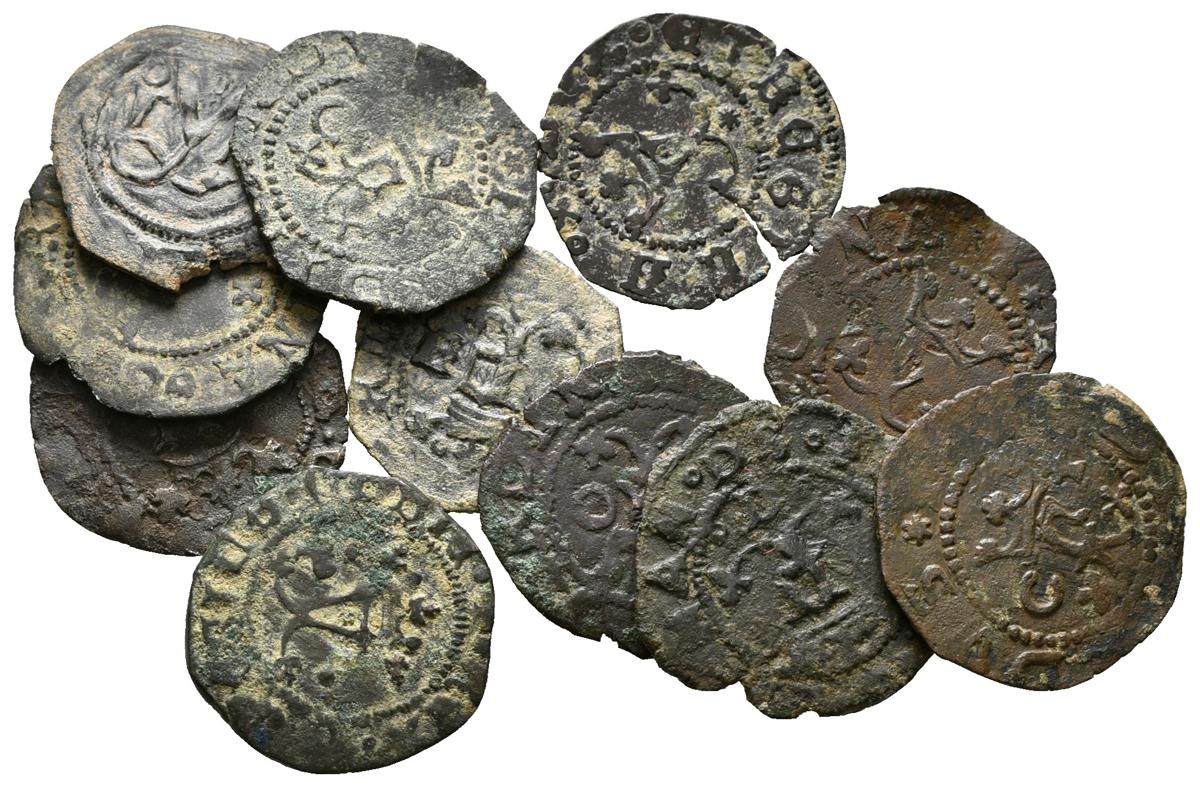 Lote compuesto por 11 Blancas de los Reyes Católicos conteniendo cecas de Cuenca (diferentes tipos) y Toledo. Entre ellas incluye un Cornado de Fernando El Católico. Diferentes estados de conservación. EXAMINAR.
