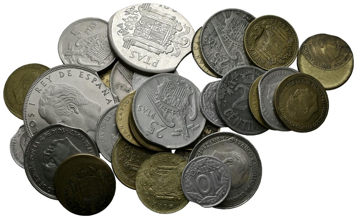 CENTENARIO DE LA PESETA, ESTADO ESPAÑOL y JUAN CARLOS I. Lote de 33 piezas comprendidas entre el Reinado de Alfonso XIII y Juan Carlos I de diferentes valores con diferentes errores y variantes. Diferentes estados de conservación. A EXAMINAR.