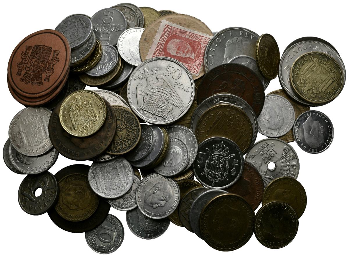 CENTENARIO DE LA PESETA hasta JUAN CARLOS I. Lote de gran cantidad de moneda españolas desde el Gobierno Provisional a Juan Carlos I, incluyendo los 5 céntimos de 1953, 4 piezas de 100 pesetas de Franco de 1966 y moneda sello. Diferentes materiales, valores y conservaciones. A EXAMINAR.