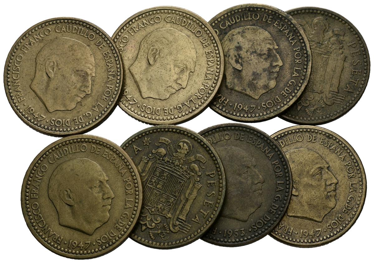 ESTADO ESPAÑOL. Serie completa de la peseta de 1947, 8 piezas en total (* 48, 49, 50, 51, 52, 53,54 y 56). Madrid. Diferentes estados de conservación. Estrellas visibles. A EXAMINAR.