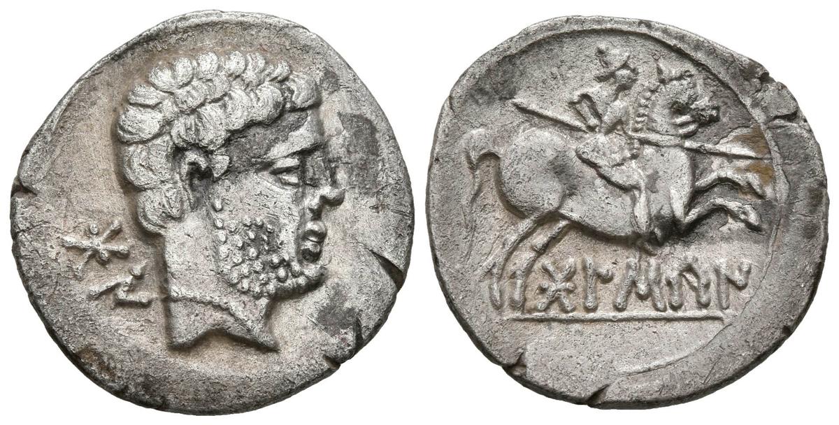 BOLSCAN (Huesca). Denario. (Ar. 3,40g/20mm). 180-20 a.C. (FAB-1911). Tipo palenzuela. MBC/MBC+.