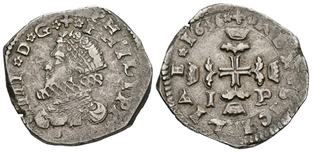 FELIPE IV (1621-1655). 3 Taris (Ar.7,88g/26mm). 1636. Sicilia. (Vti-142). MBC.