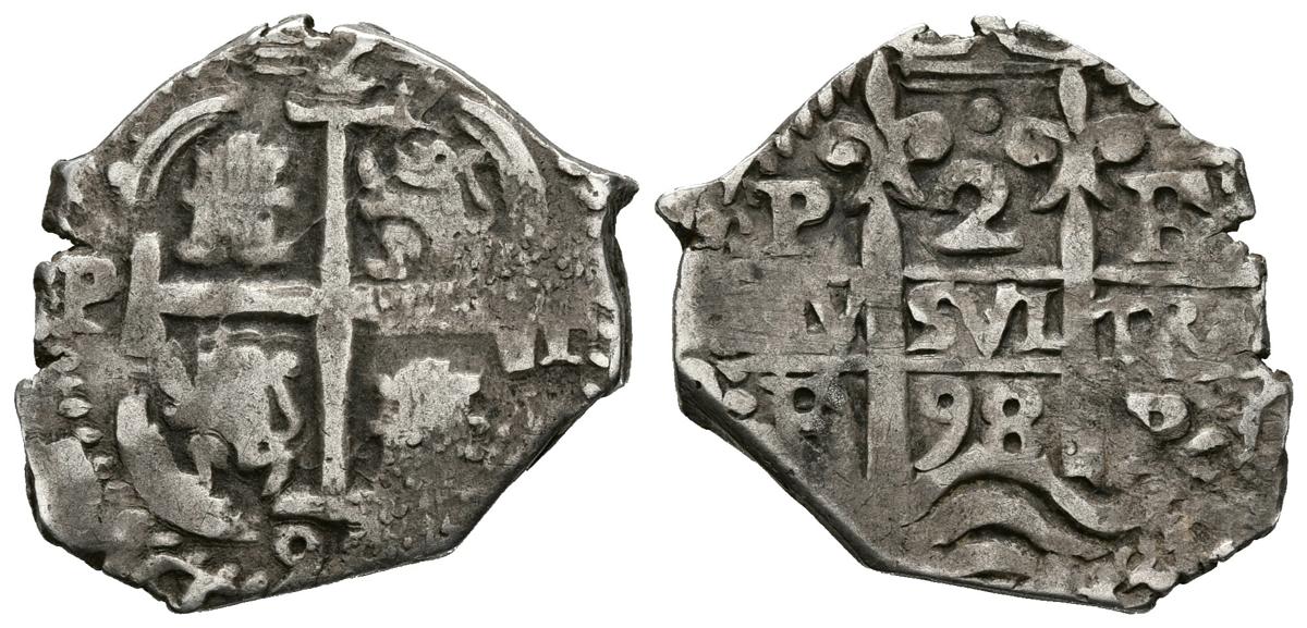 CARLOS II (1665-1700). 2 Reales. (Ar. 4,98g/22mm). 1698. Potosí VR. (Cal-2019-433). Doble fecha. MBC+.