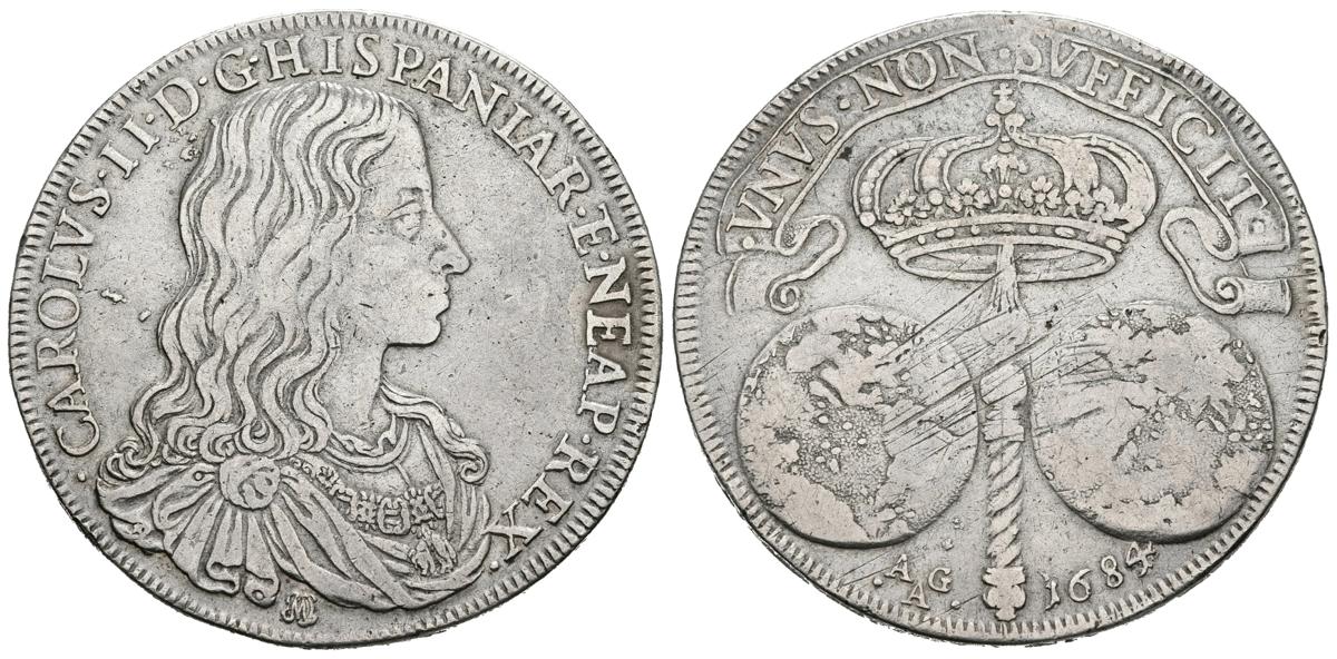 CARLOS II (1665-1700). 1 Ducado. (Ar. 28,00g/41mm). 1684. Nápoles. (Vti-191; Mir-292). MBC.
